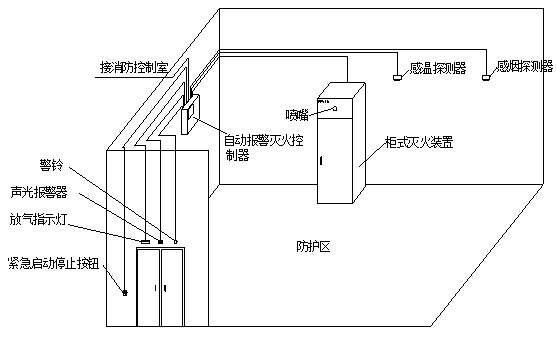 無管網自動滅火裝置是氣體滅火技術應用之一,具有輕便、可移動、安裝靈活的特點,外表美觀,不破壞防護區內的整潔,火災時能自動啟動噴放滅火劑的滅火裝置。噴射時間短,滅火速度快。啟動方式為自動控制、手動電氣控制二種。自動控制、手動電氣控制可進行切換。一般情況下應使用手動控制,在保護區無人的情況下可以轉換為自動控制。當自動控制和手動電氣控制不能執行時,應采用機械應急手動控制。